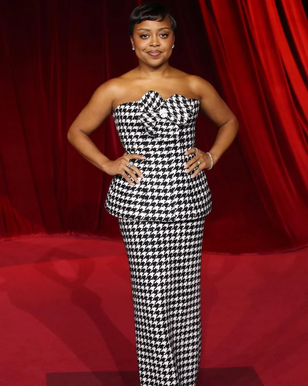 Think sharp suits, sculptural gowns, and tailored separates in a Black and White palette. Play with texture—silk, velvet, sequins, feather or fringe—anchored by sleek pumps or polished loafers. Accessories should make a statement (bold earrings, jeweled cuffs, a sleek clutch); beauty is clean and camera-ready. No casual denim or sneakers—this is high-glam, front-row energy.